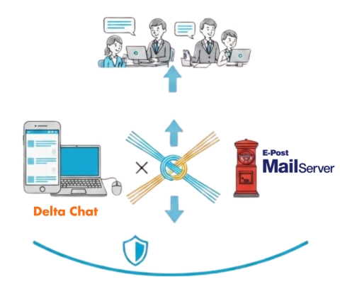 DeltaChatは中央サーバを持たず、庁舎内や社内に置いたメールサーバ内で完結します。