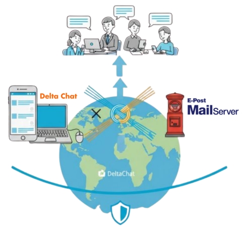 DeltaChat × E-Post Mail Server のユニークさについて紹介します。DeltaChatについては、前項の「33.メールがチャットに!新しいコミュニケーションのかたち」でも詳しく紹介していますのでご覧ください。