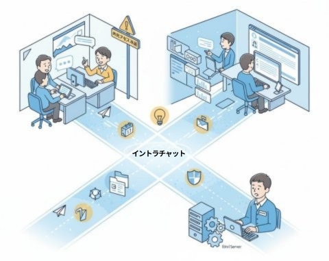 端的に言えば、イントラチャットは、社内の情報の流れをなめらかにする"道"みたいなものです。